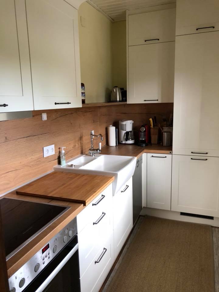 Die Küche im „Landhaus-Stil“ ist komplett eingerichtet (Backofen, Herd, Kühlschrank, Geschirrspüler, Filterkaffeemaschine, Nespresso-Kaffeemaschine, …).
