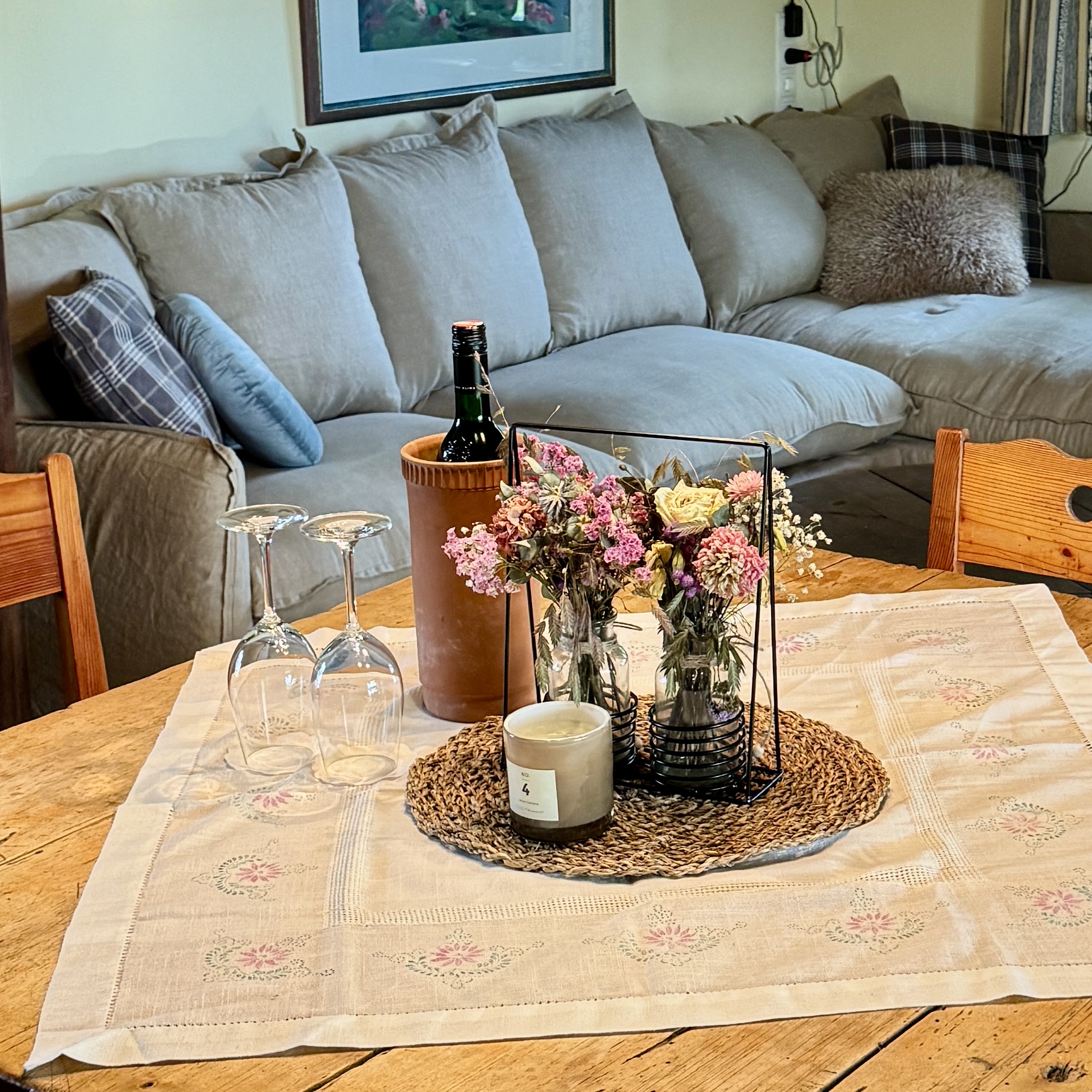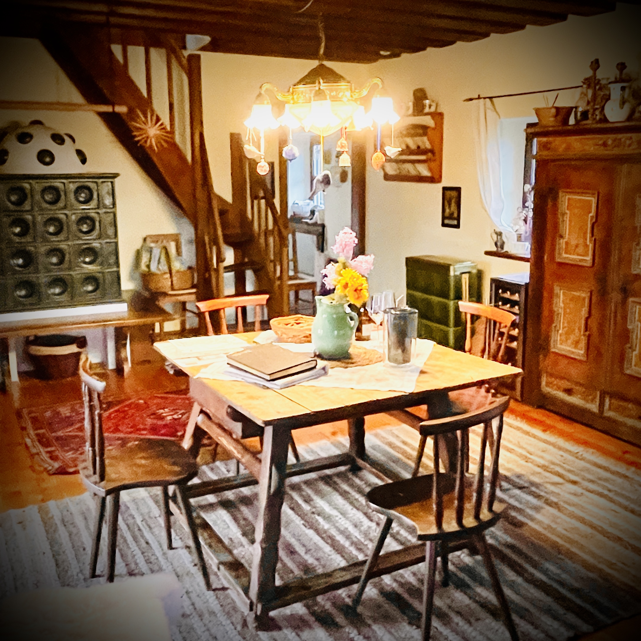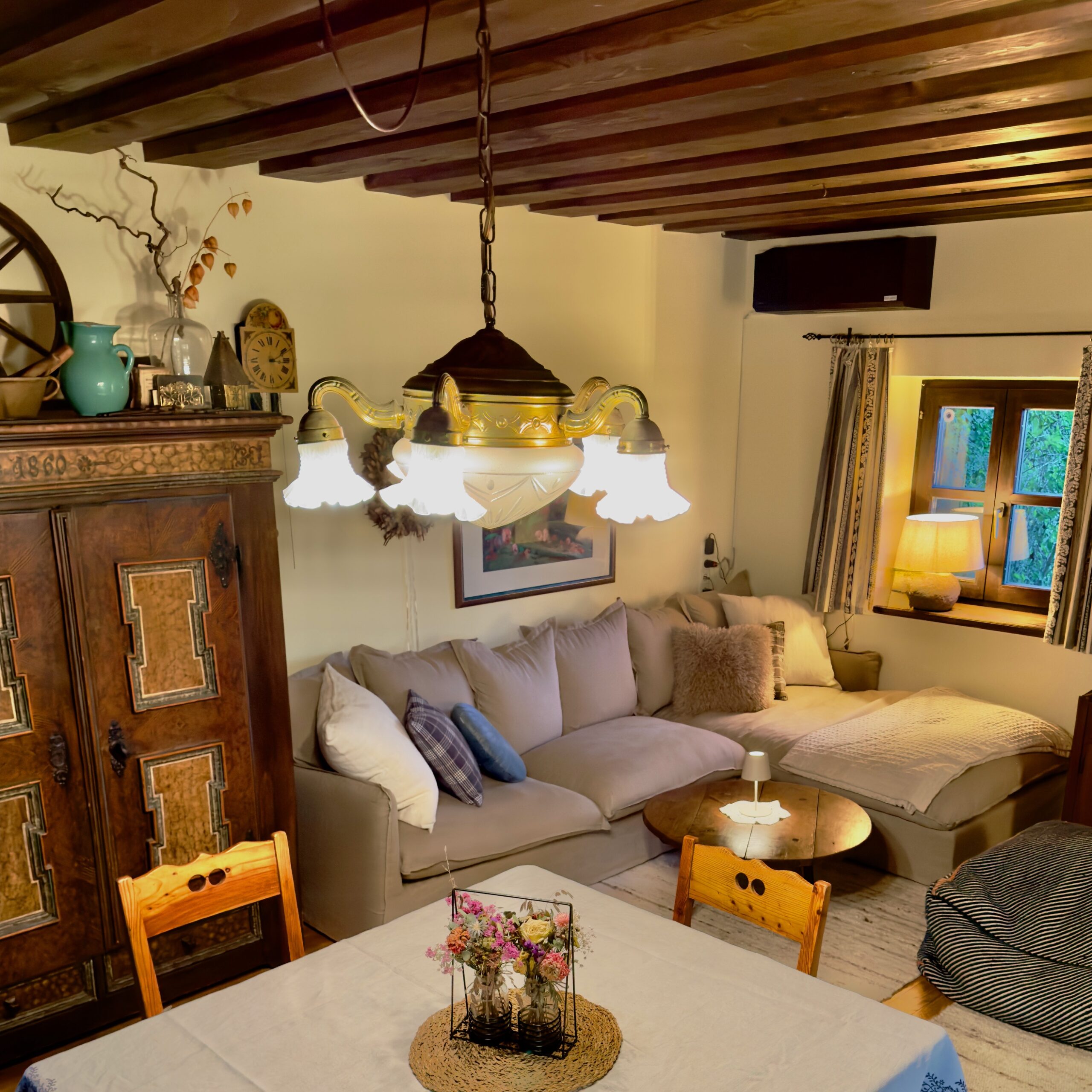 Der zentrale Raum ist die liebevoll eingerichtete „Winzerstub´n“. Neben dem „Jogltisch“ in der Mitte steht ein gemütlicher, klassischer steirischer Kachelofen. An diesem können Sie es sich an einem romantischen Herbstabend bei einem Glas Wein gemütlich machen. Das Wohnzimmer ist mit einem SmartTV, gratis WiFi und Air Condition ausgestattet. Im „Setzkostn“ an der Wand direkt neben dem original „Sulmtaler Hut“ können Sie uns gerne ein persönliches Souvenir hinterlassen.