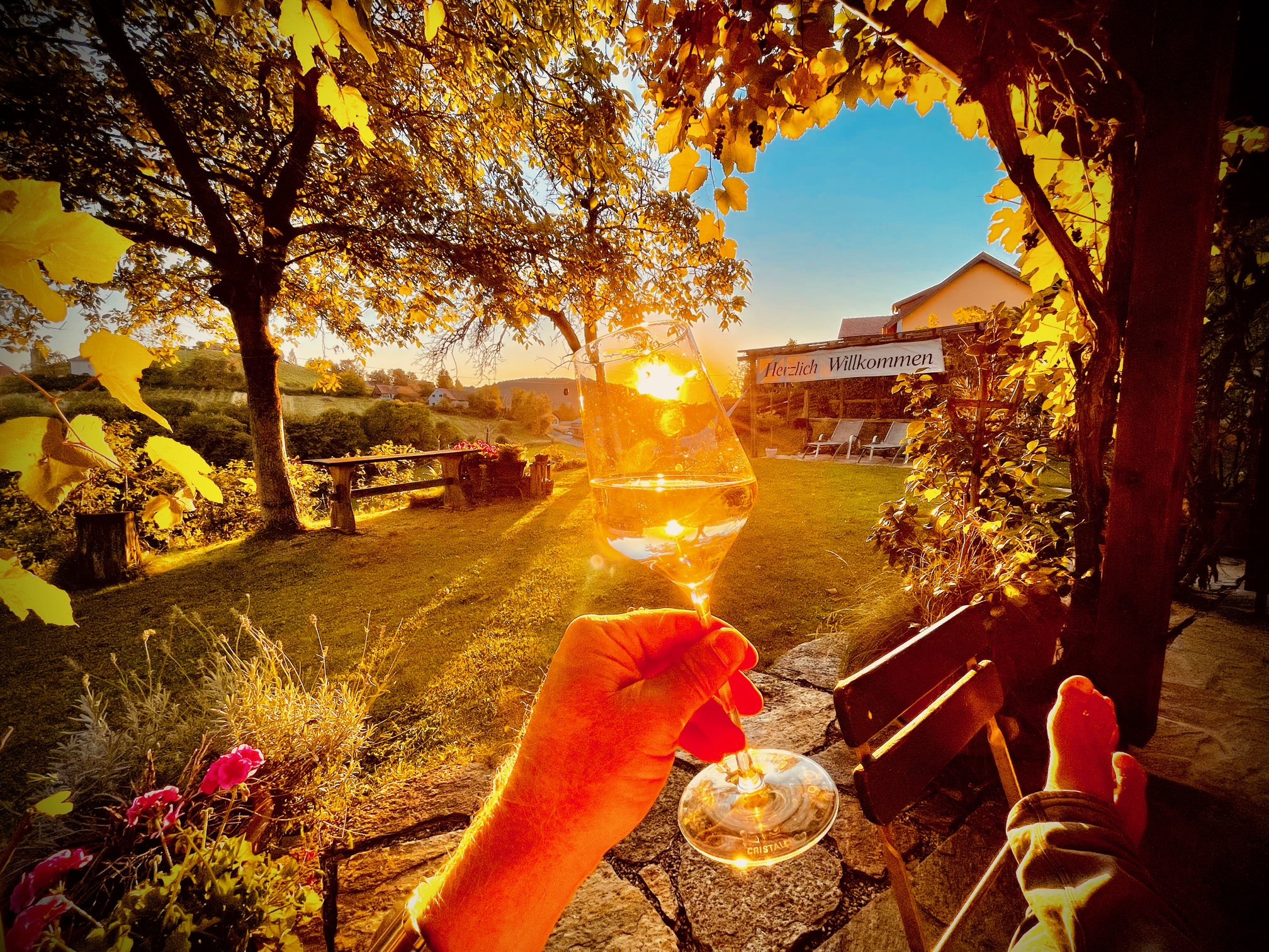 Genießen Sie völlige Ruhe bei einem „edlen Tropfen Wein“ in der überdachten Veranda, unter der Pergola oder in der Hängematte im Garten unseres Hauses. Veranstalten Sie doch ein Grillfest mit Ihren Lieben. Griller, Liegestühle, Sonnenschirme usw. sind vorhanden und können von unseren Gästen gerne benutzt werden. Auch Kinder werden unseren Garten lieben, denn hier können sie ungestört umhertollen! Hunde sind in unserem Ferienhaus immer willkommene Gäste.