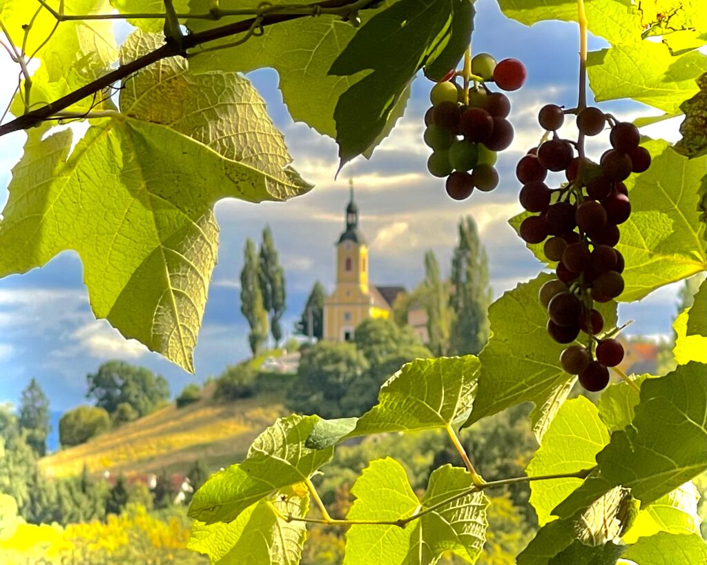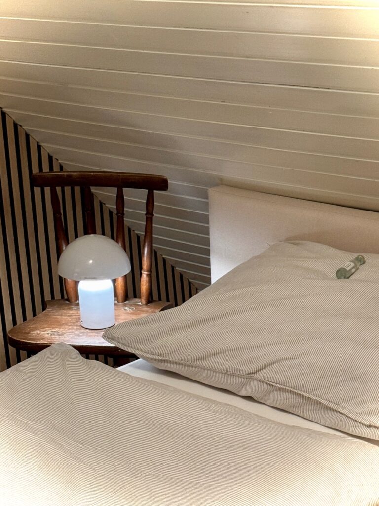 Über die original steile „Winzerleiter“ gelangen Sie in das obere Geschoss. Das verfügt über zwei getrennt voneinander begehbare klimatisierte Schlafzimmer mit jeweils zwei komfortablen Betten. Ein Zimmer hat einen Balkon, von wo aus Sie einen herrlichen Ausblick auf die Kitzecker Kirche genießen. Im Wohnzimmer befindet sich ein Schlafsofa für zwei Personen. Falls Sie mit Baby oder Kleinkind anreisen sollten, stellen wir Ihnen auch gerne Kinderbetten zur Verfügung.
